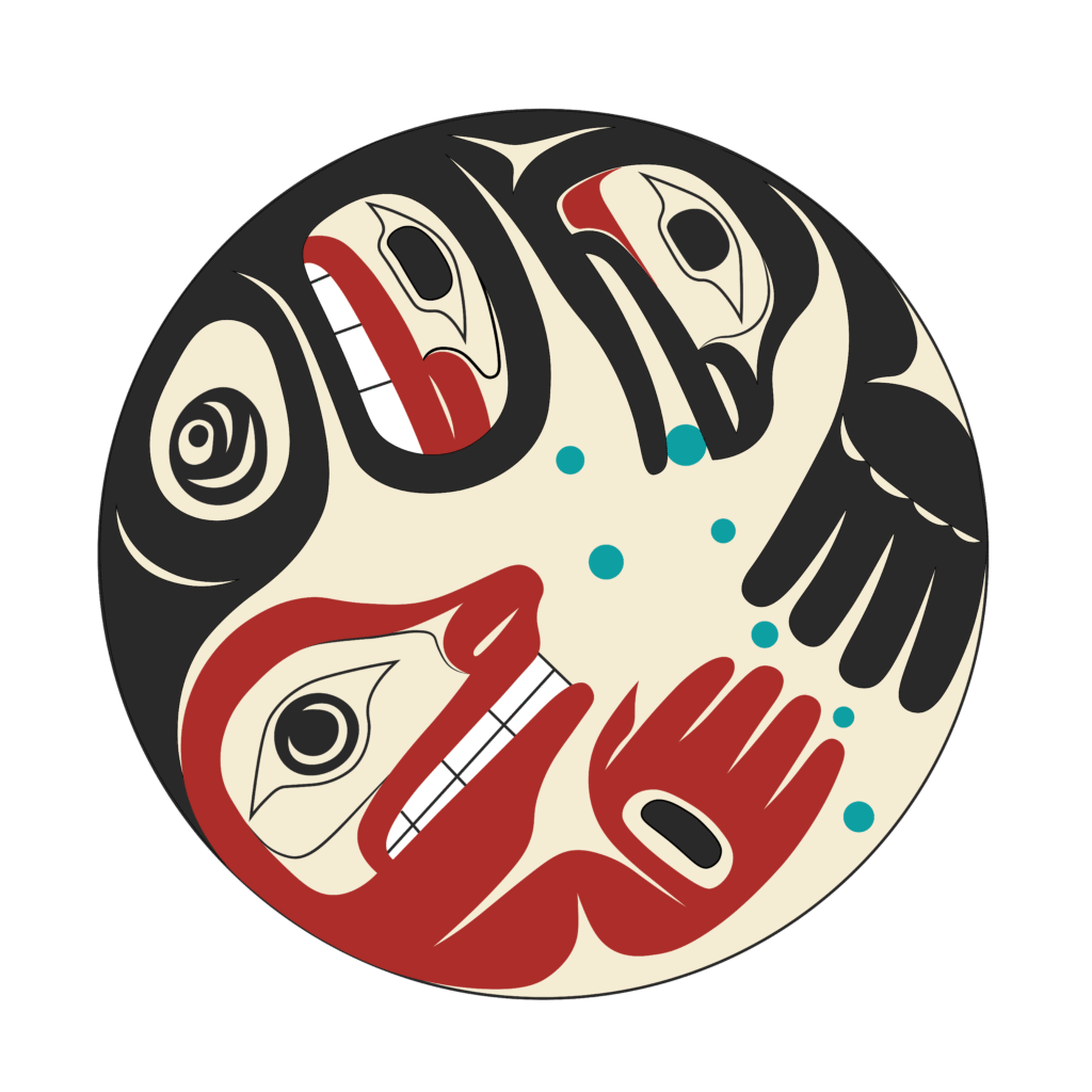 The best depiction I could think of is making your family proud through your generosity. Gifts are often spoken about in tradition, as in, “That Raven clan guy gave us a lot of abalone—those Raven clan guys are alright!” I represented this with a Raven figure handing over silver or abalone to someone in need. That kind of caring and generosity makes your clan look good as a whole. I would be proud to be family with people like that, and traditionally, gifts symbolize both status and friendship.