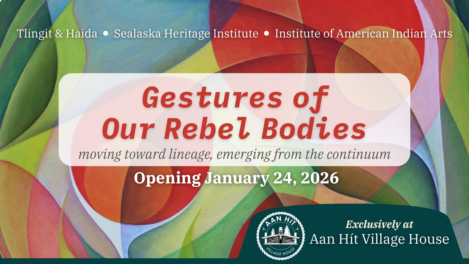 Gestures of Our Rebel Bodies is a group exhibition opening Saturday, January 24, 2026 at Aan Hít Gallery in Juneau, Alaska. Featuring leading and emerging Indigenous artists from across the Northwest Coast, the exhibition explores how embodied practice, movement, material knowledge, and creative speculation function as engines of cultural continuity and future-making. Presented by Tlingit & Haida in collaboration with Sealaska Heritage Institute and the Institute of American Indian Arts, Gestures of Our Rebel Bodies brings together contemporary Tlingit, Haida, and Tsimshian artists whose work pushes beyond expectations of tradition while remaining deeply rooted in ancestral responsibility.