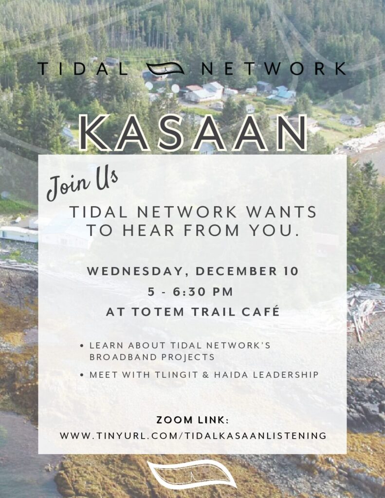 Tlingit & Haida and Tidal Network invite you to upcoming community meetings in seven Southeast Alaska communities. These listening sessions are a chance to hear updates on the Tidal Network and share your perspective on local connectivity needs.