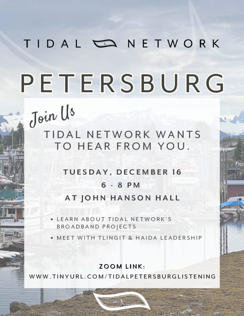 Tlingit & Haida and Tidal Network invite you to upcoming community meetings in seven Southeast Alaska communities. These listening sessions are a chance to hear updates on the Tidal Network and share your perspective on local connectivity needs.