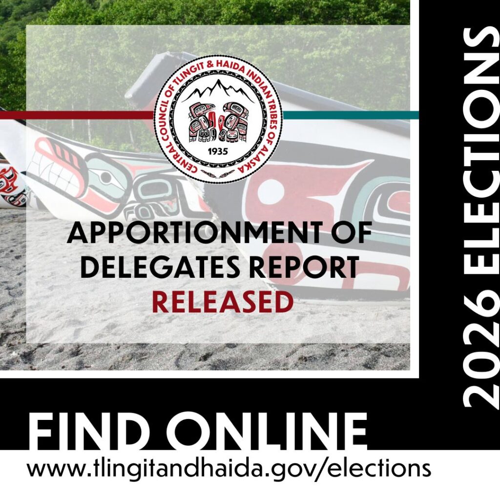The Apportionment of Delegates Report has been published on Tlingit & Haida’s Elections webpage. The report outlines how many Delegates each of the Tribe’s 22 recognized communities may elect for the upcoming election cycle.