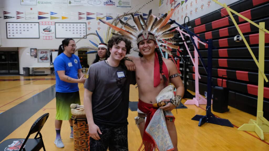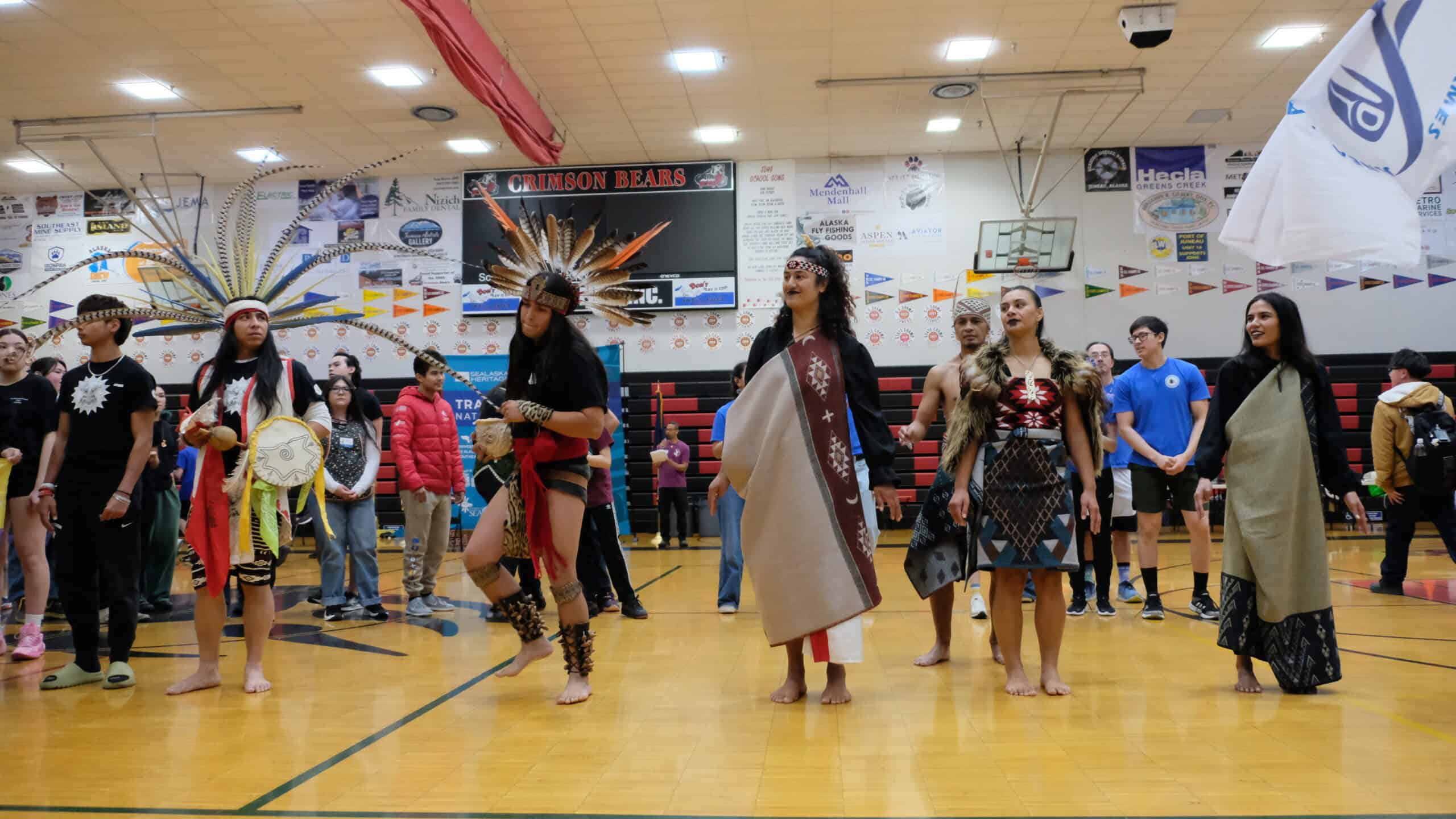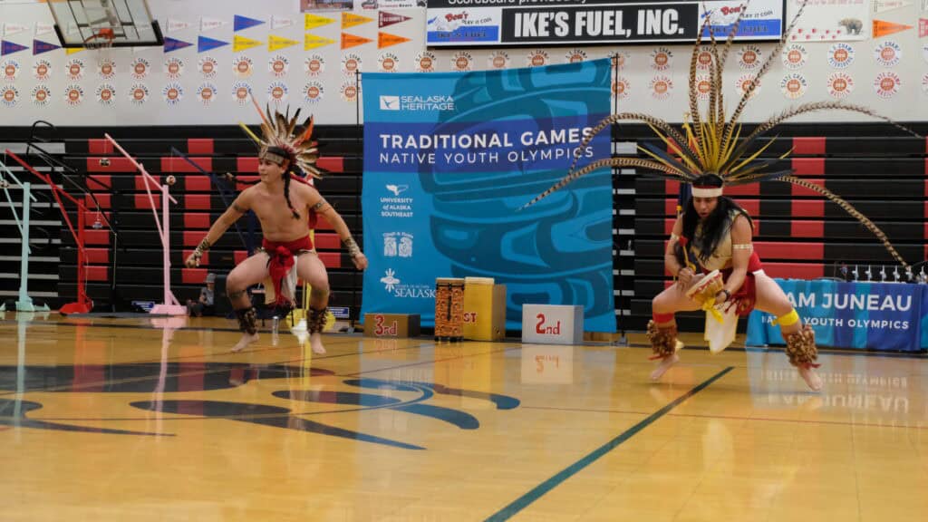 The deep call of a conch shell filled the Juneau-Douglas High School Gym as Ehecatl Cortes Hernandez and Isaac Eagle Bear Alvarado took to the floor.
