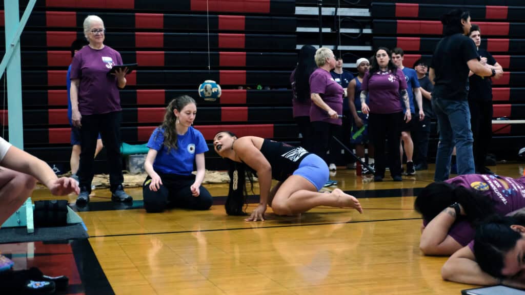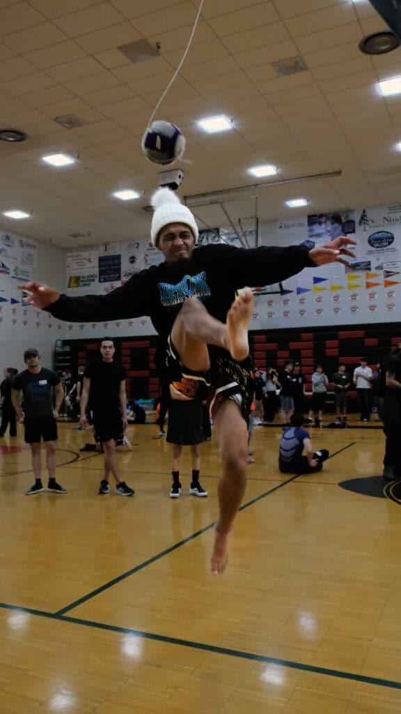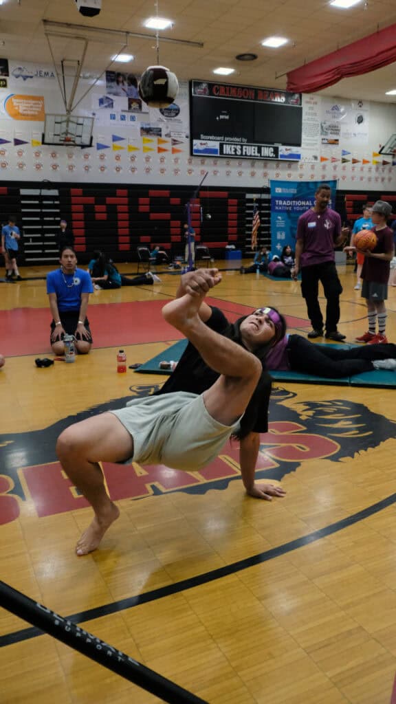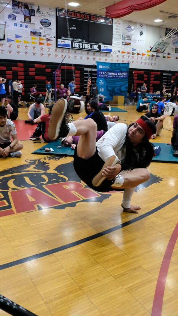 Yves was honored to share one of Aotearoa’s traditional games with athletes who usually compete in Arctic sports like the two-foot high kick and kneel jump and Dene games like the Inuit stick pull.