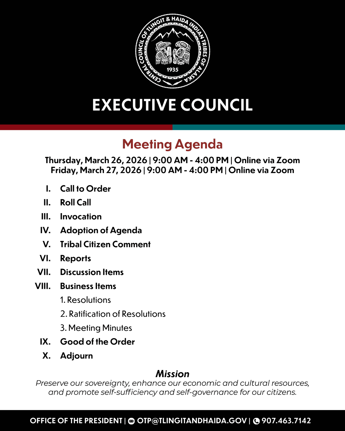 What: March Tlingit & Haida Executive Council meeting